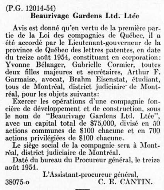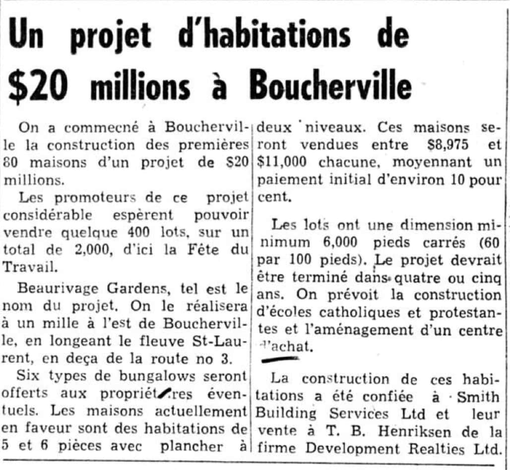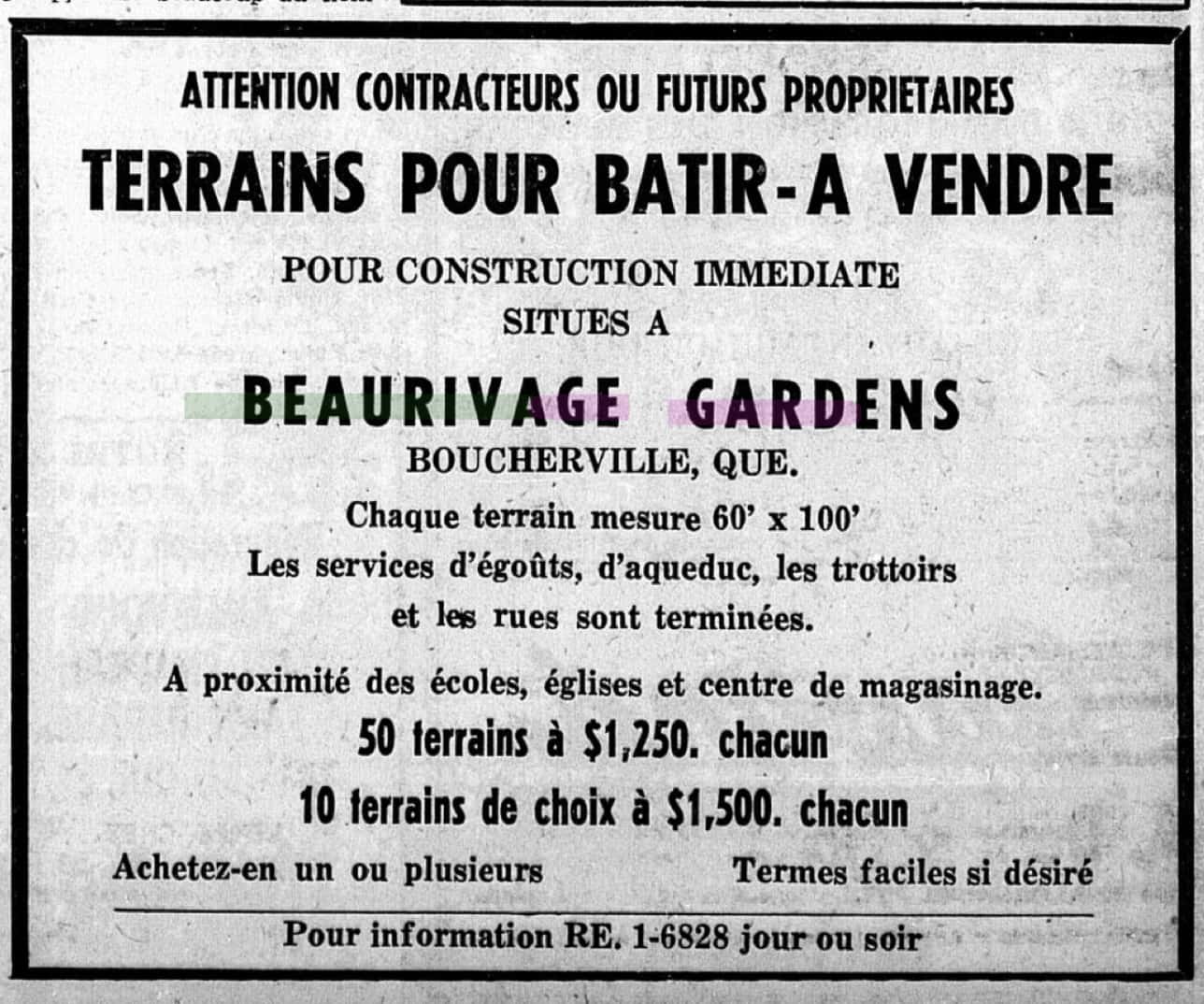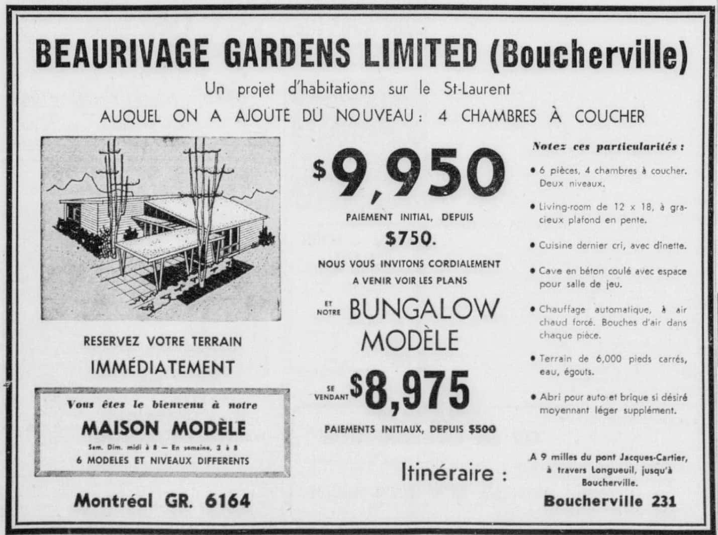 En 1954, la toute nouvelle compagnie montréalaise Beaurivage Gardens Ltd.
