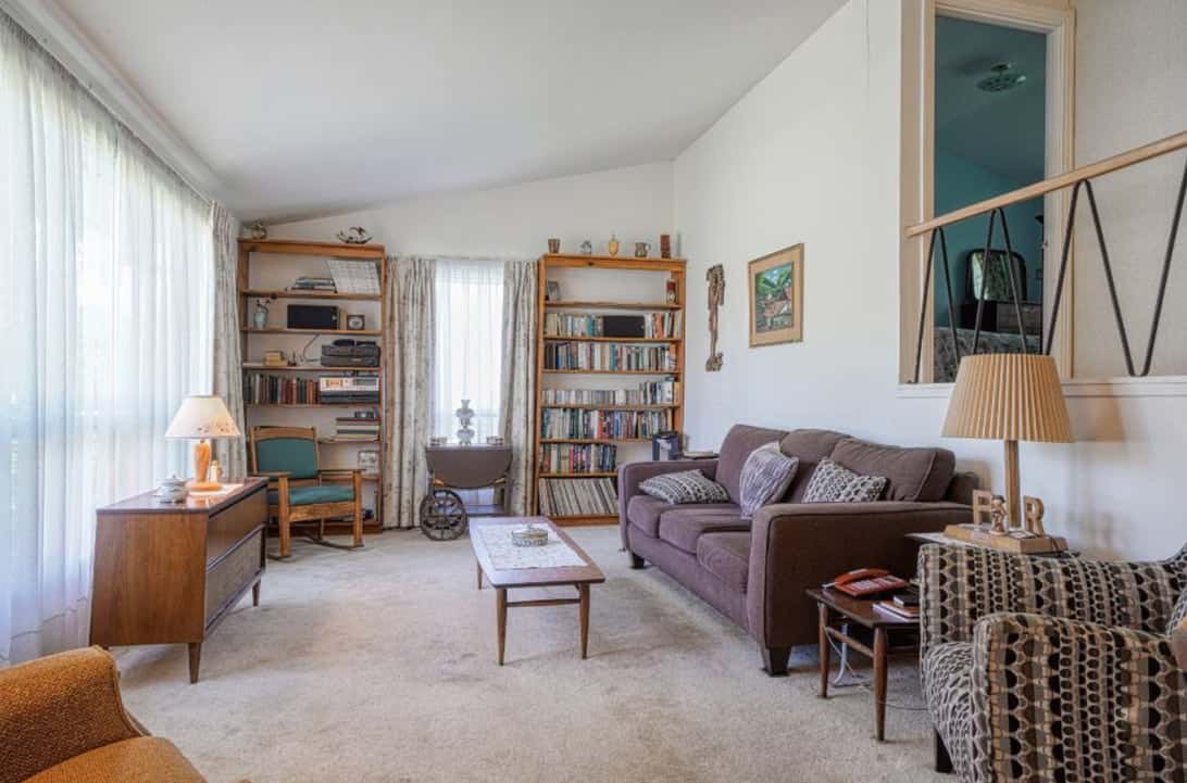 Il s'agit d'un plan sur un niveau et demie. Le séjour et la cuisine sont au rez-de-chaussée dans la moitié avant de la maison alors que les 3 chambres et la salle de bain sont sur un niveau plus élevé dans la partie arrière de la maison. Au sous-sol, la partie avant n'a que quatre pieds de hauteur alors que dans la partie arrière le plafond est à 8 ou 9 pieds.