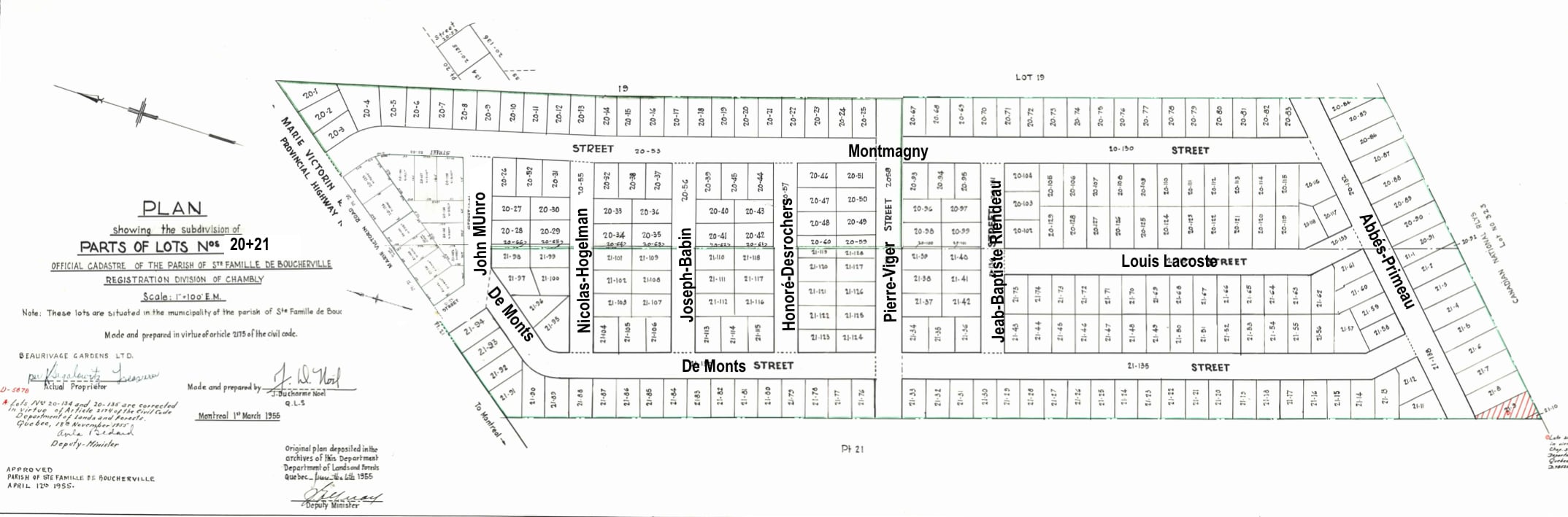 subdivisé en quelque 230 lots de 60 pieds sur 100. Une trame orthogonale