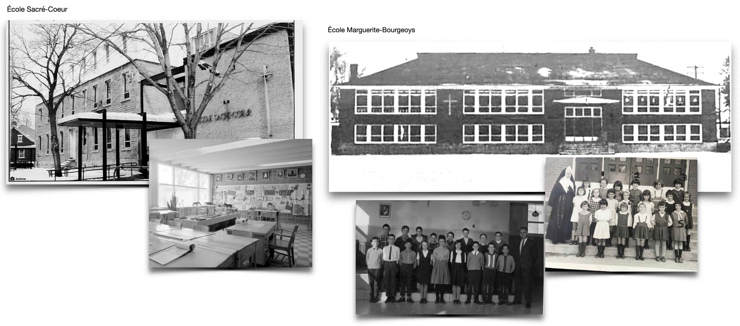 Les plus âgés féquentaient les écoles Sacré-Coeur et Marguerite-Bourgeoys. Dans cette dernière, quelques classes étaient occupées par des élèves anglophones catholiques. En 1963, elle leur est exclusivement réservée.