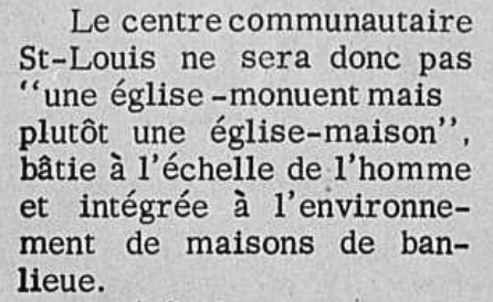 Considérant la baisse de la ferveur religieuse à l’époque, on envisage la possibilité d’un bâtiment polyvalent qui permette des activités religieuses, culturelles, de loisirs et autres.