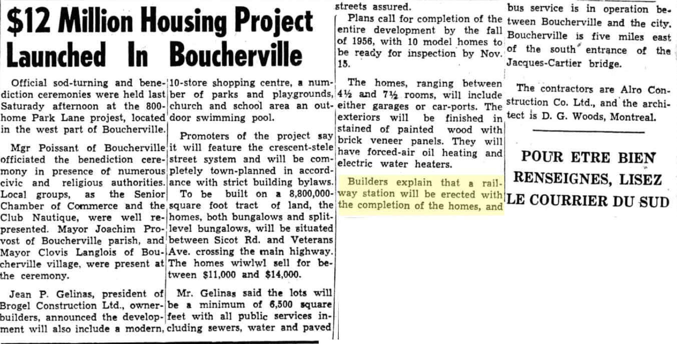 En avril 1958, Brogel annonce la relance de son projet à Boucherville en